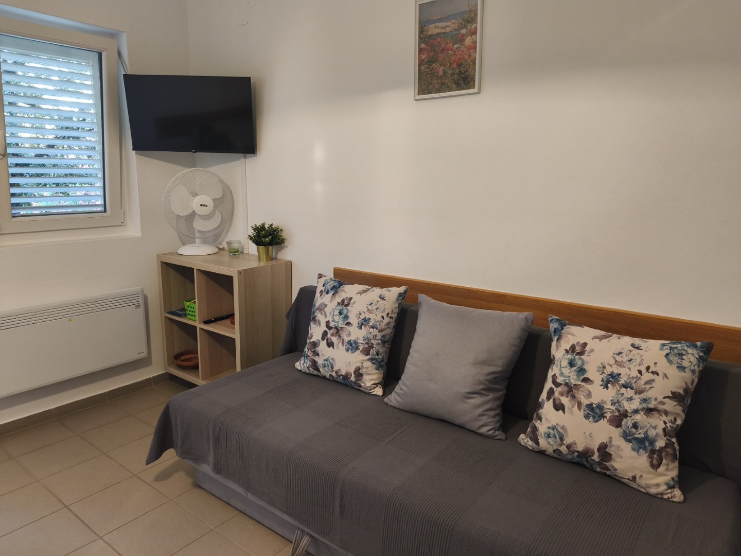 Terasa sa pogledom na more, 35m², blagavonica-kuhinja, kupaonica, odvojena spavaća soba. Opremljen sa Wi-Fi, TV, klima uređajem, hladnjakom i mikrovalnom.
